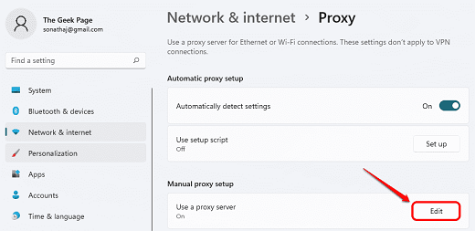 第 2 步:现在在Manual proxy setup部分下,单击名为Edit的按钮。
