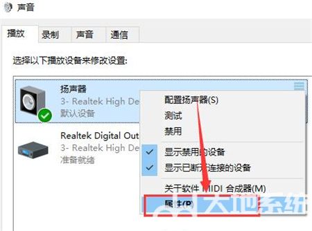 3、然后鼠标右键【扬声器】选择【属性】。