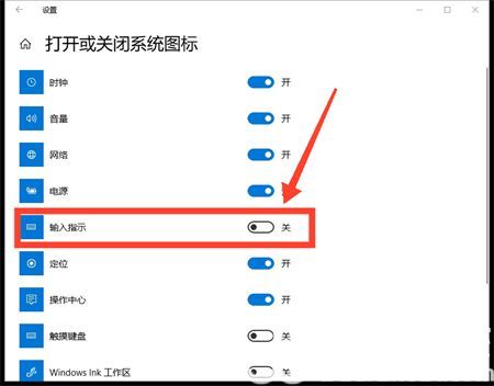 5、找到【输入指示】,点击右方按钮,开启图标显示即可。