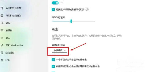 4、开启之后,我们还需要将触摸板的灵敏度调高,这样就可以解决触摸板失灵或不灵敏等问题。