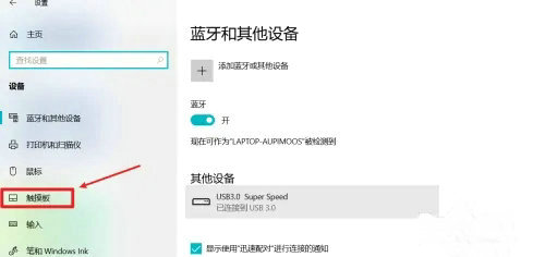 3、在触摸板页面中,我们需要开启触摸板功能。