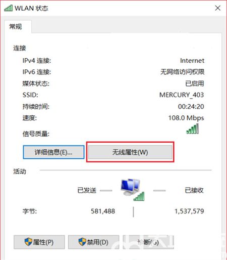 3、找到你已连接的“WIFI名称”,单击它打开“WLAN状态”界面;