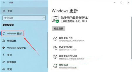2.随后在打开的页面左侧点击【windows更新】,然后在页面右侧选择【查看更新历史记录】打开。