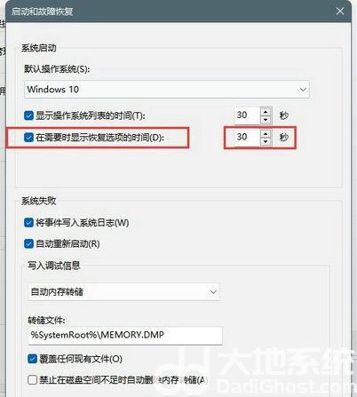 6、进入设置功能后,将在需要显示恢复选项的时间勾选好,再将右边的时间设置好就可以按确定按钮了