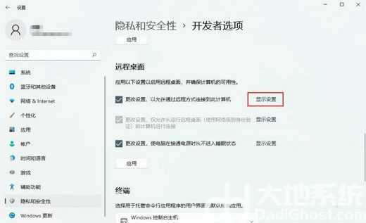 4、随后,在页面中找到远程桌面功能,然后点击以允许通过远程方式连接到此计算机右边的显示设置按钮