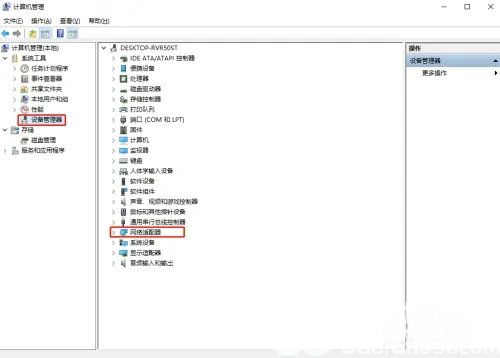 找到其中的“设备管理器”下的“网络适配器”进入,如图所示。