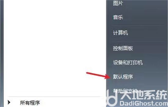 1、点击桌面左下角开始图标,进入【默认程序】。