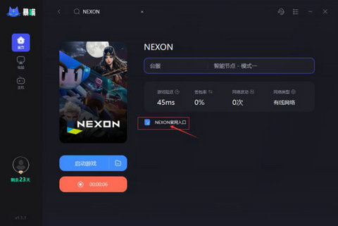 1、浏览器下载使用下面的加速工具,搜NEXON并港 服或台 服等区服完成加速,然后点击加速界面的NEXON官网入口进入,(这边推荐玩家可以使用谷歌账号注册NEXON账号)