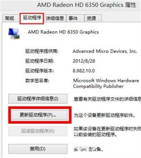4.然后在graphics属性窗口中切换到“驱动程序”标签,单击“更新驱动程序”选项;
