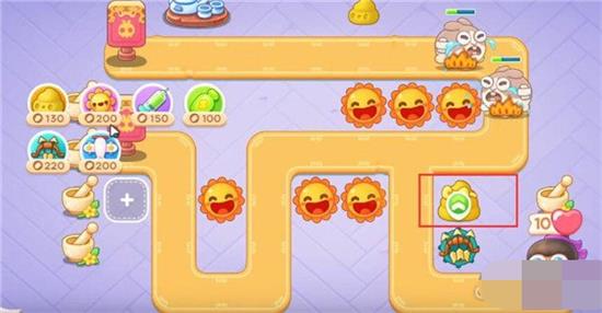 3、在左边放一个太阳花,虽然太阳花伤害高但是对后面的兔子多的情况下还是有些乏力,所以在右边还要补充一个多重箭。
