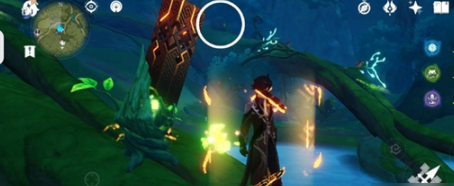 2、拾取解密地点藤蔓上的【健壮的草种子】用弓箭击打【三处机关】,其中两处是藏在石头中的。