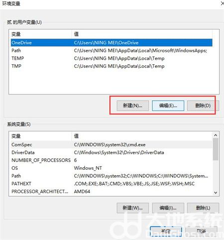 3、在这里我们可以看到所显示的变量,单机新建就能新建一个环境变量。选中自己要设置更改的变量再点击编辑就能对其设置。