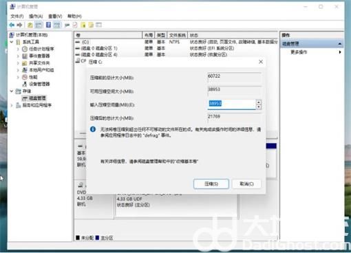 4、此时能够得出压缩空间的数值,然后输入需要的压缩空间,点击压缩。
