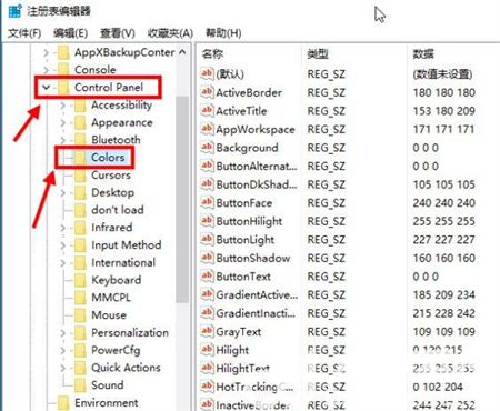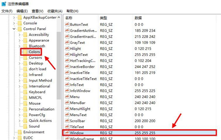 3、在Control Panel文件夹中找到Colors文件夹后点击。在Colors中找到window,点击;