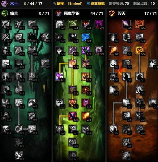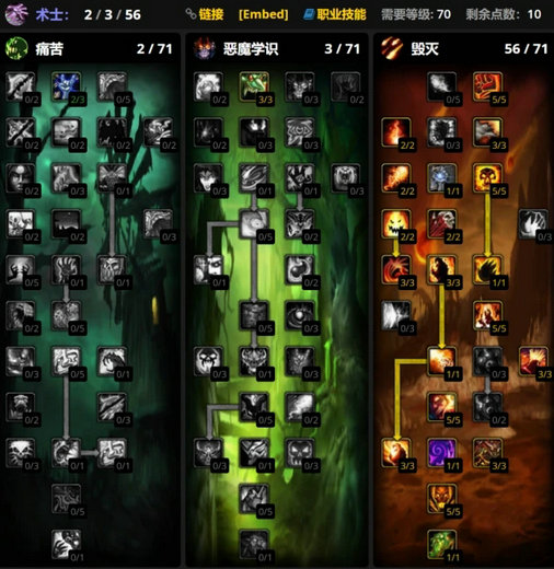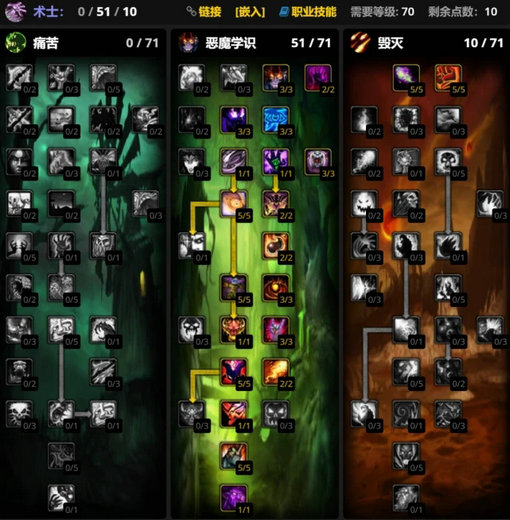 魔兽世界wlk前夕术士天赋加点推荐: