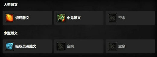 雕文方面,大雕文建议使用烧尽雕文和小鬼雕文,小雕文使用吸取灵魂。