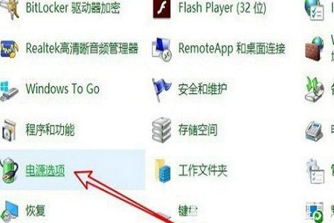 4.在打开的windows10的所有控制面板项窗口中找到并点击“电源选项”的图标;