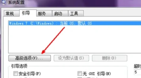 4、然后在此选项卡下有一个高级选项的按钮,可以从这里来设置处理器的核心数量,点击一下此按钮。