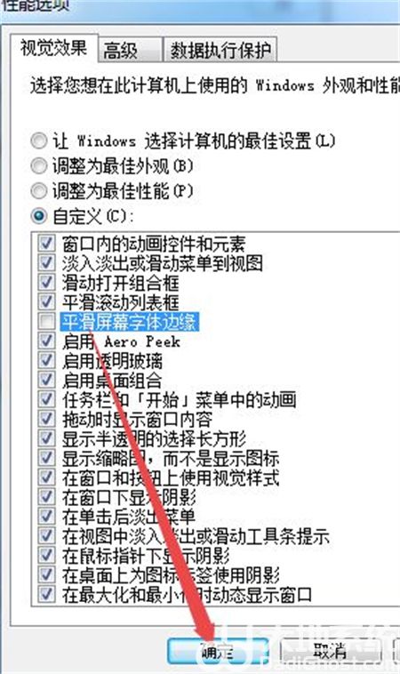 4、取消勾选平滑屏幕字体边缘,点击确定即可。