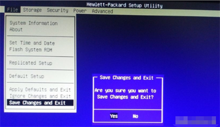 4.返回“file”菜单,选择最后一行“Save Changes and Exit”保存,点击“yes”。