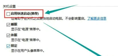 第五步:在“关机设置”中,取消“启用快速启动”前的勾选,然后单击“保存修改”即可。