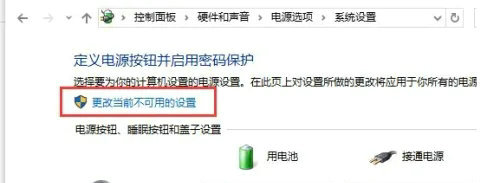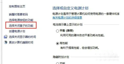 第四步:在电源选项界面的左侧选择“选择关闭盖子的功能”,然后点击“更改当前不可用的设置”