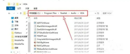 3、依次打开进入"program files>Realtek>audio>HDA";