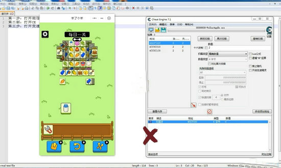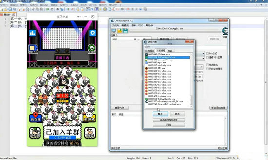 1、首先打开Cheat Engine工具,打开微信小程序的羊了个羊游戏,用变速齿轮测试游戏进程,找到进程打开。