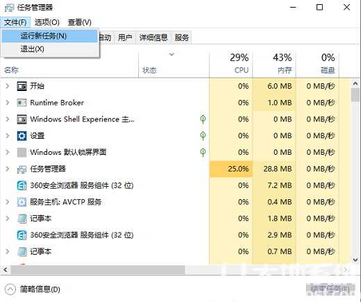 2.进入任务管理器界面后,点击左上角的文件,选择运行新任务。