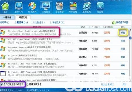 一:如果点击刷新网络列表时出现“Windows无法配置此连接”的提示,则打开金山卫士的“系统优化”功能,点击“开机加速”选项卡,点击“服务项”,选中左下角的“显示已禁止启动的项目”,然后在列表中找到“Wireless Zero Configuration(无线配置服务)”,点击右侧的“开启”即可。然后在开始-运行中,输入net start wzcsvc,回车即可。笔记本无线网络连接不上的症状即可解决。