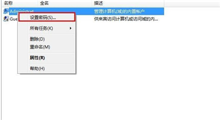 4、完成上一步设置之后打开本地用户和组选项中的用户文件夹,使用鼠标右键单击选择“设置密码”选项,这样不需要原始密码也可以设置新的密码了;
