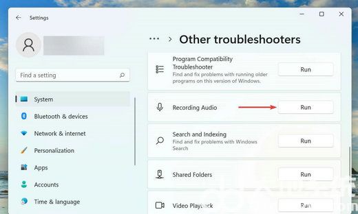 找到录制音频疑难解答,然后单击旁边的“运行”按钮。