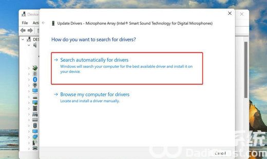 最后,从更新驱动程序窗口中列出的两个选项中选择自动搜索驱动程序。