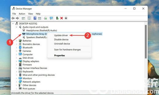 右键单击出现故障的麦克风,然后从上下文菜单中选择更新驱动程序。