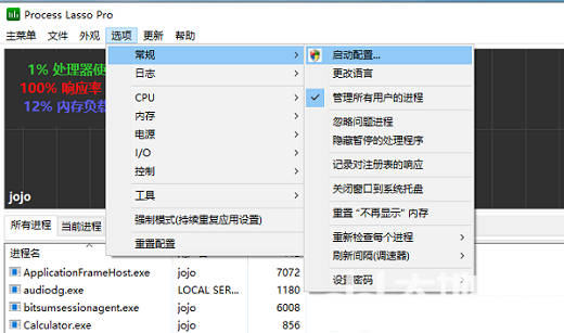 Process Lasso程序点击选项,常规里点击启动配置。