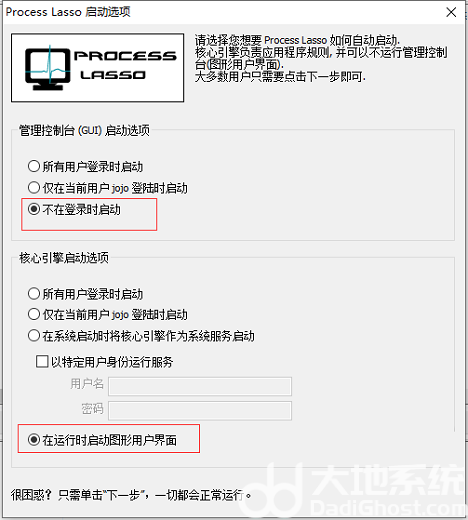 这样Process Lasso引擎还是会在后台启动的,只是GUI这个界面不自动启动而已。