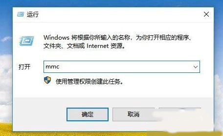 2、在打开的运行窗口中,输入命令mmc,然后点击确定按钮;