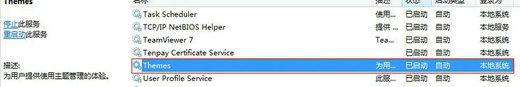 3、运行【WIN+R】,输入 services.msc 找到Themes服务,查看是否已启动,如果未启动,点右键 启动。已经启动或未解决的往下看;