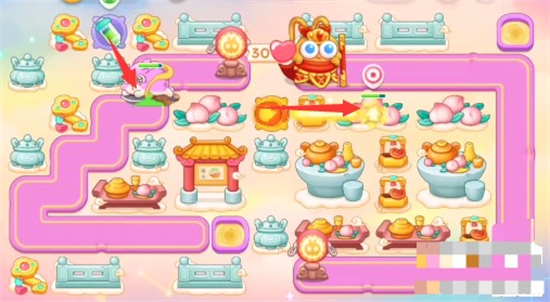 5、打完桃子之后补充泡泡塔在下图位置减速。