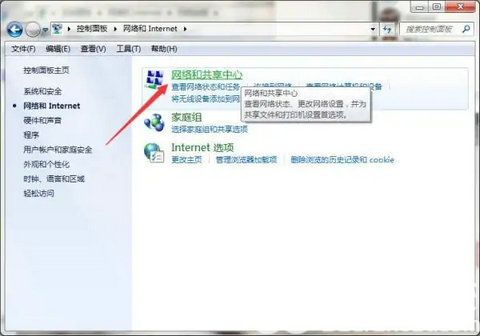 3、进入【网络和共享中心】选项