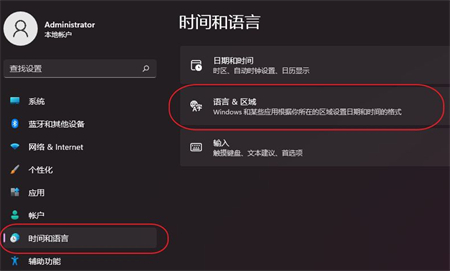 2.进入到页面后,在“时间和语言”分栏中找到“语言&区域”,点击进入。