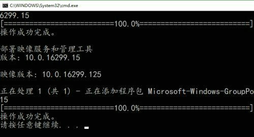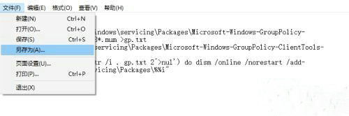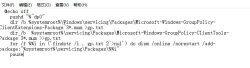 说明:通过dir命令遍历系统盘servicing目录,寻找组策略的配置包,找到后写入到gp.txt文件,然后通过dism命令来安装组策略包。
