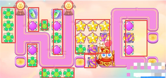 2、开局放置一个风扇清怪,后方放置一个烟花开图,开的第一个格子继续放置烟花。