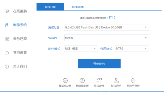 3.将准备好的u盘插入一台能用的电脑,点击制作u盘。