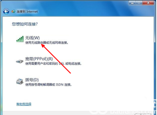5、在连接方式窗口,我们选择使用无线进行连接,点击进入下一步。