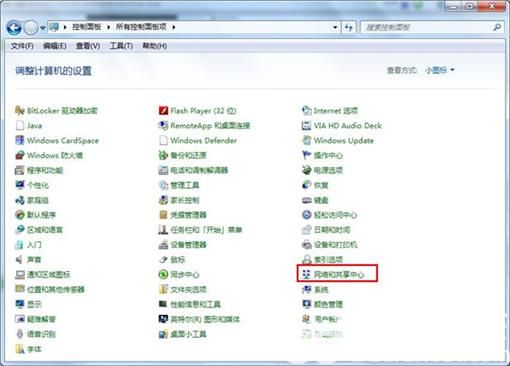 2、打开控制面板之后,找到并打开“网络和共享中心”这个选项。