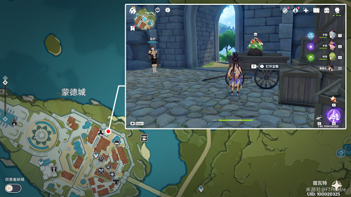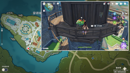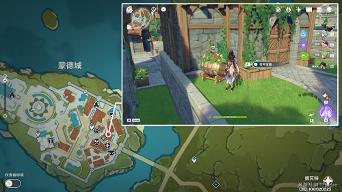 来到蒙德城传送点东北侧,前往如图位置,在猫尾酒馆旁上取得宝箱六。
