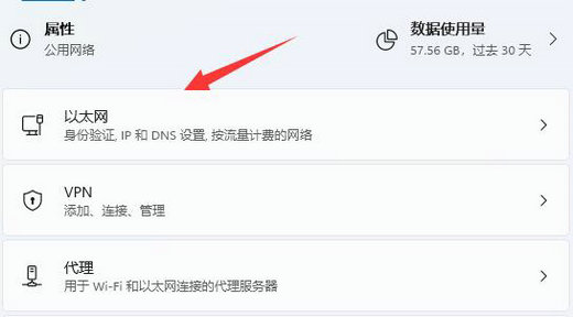 2、打开网络下的“以太网”