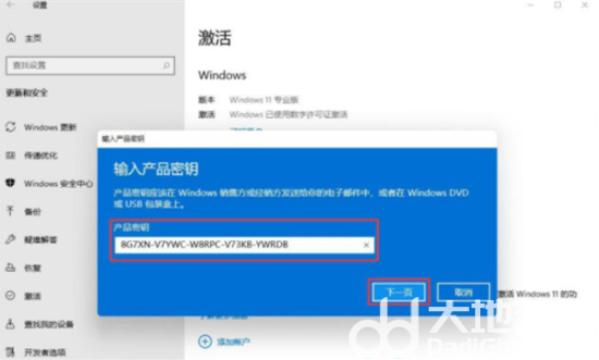 3.接着输入上方提供的激活密钥。