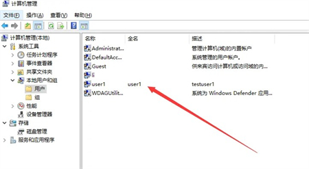2.在左侧选项栏中 依次点击 本地用户和组-->用户-->右键 选择 新用户